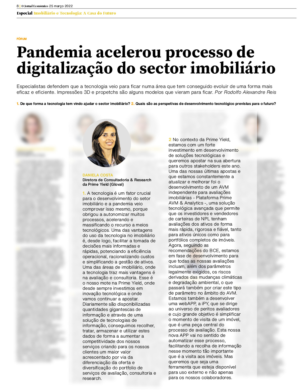 Prime Yield na Imprensa: “Pandemia acelerou processo de digitalização do sector imobiliário”
